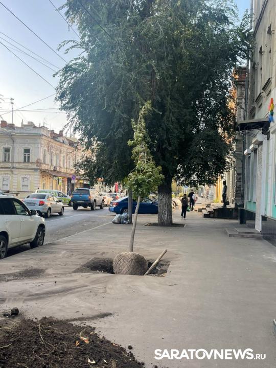 В Саратове стартовала программа озеленения центральных улиц при поддержке губернатора Романа Бусаргина. Ранее в Саратове никогда не высаживались деревья такого размера.