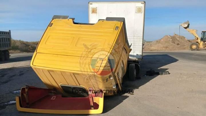 В четверг, 12 октября, на саратовской кольцевой автодороге произошло ДТП. На выезде из Заводского района Саратова 44-летний водитель фуры Mercedes не справился с управлением и въехал в ограждение. У грузовика от удара вывернуло кабину.