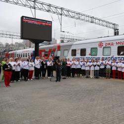В России от Владивостока до Москвы курсирует поезд здоровья «Вместе против диабета». В пути и во время стоянок специалисты проводят профосмотры и диагностические исследования, направленные на выявление сахарного диабета. Пациентам проведут экспресс-анализы на глюкозу и холестерин, проверят внутриглазное и артериальное давление, сделают ЭКГ и УЗИ щитовидной железы, а после граждан проконсультируют терапевт и эндокринолог.