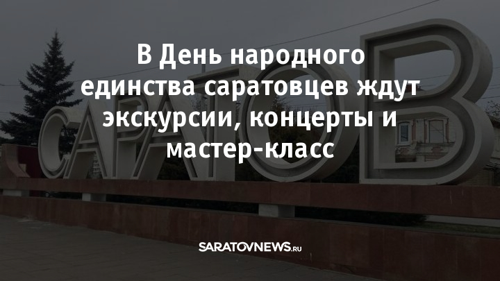 В День народного единства в Саратове состоится ряд мероприятий. В сквере Победы, Доме творчества детей и молодежи, в домах культуры поселков Тарханы, Красный Октябрь, Багаевка, Сергиевский, Михайловский, Ивановский пройдут концерты.
