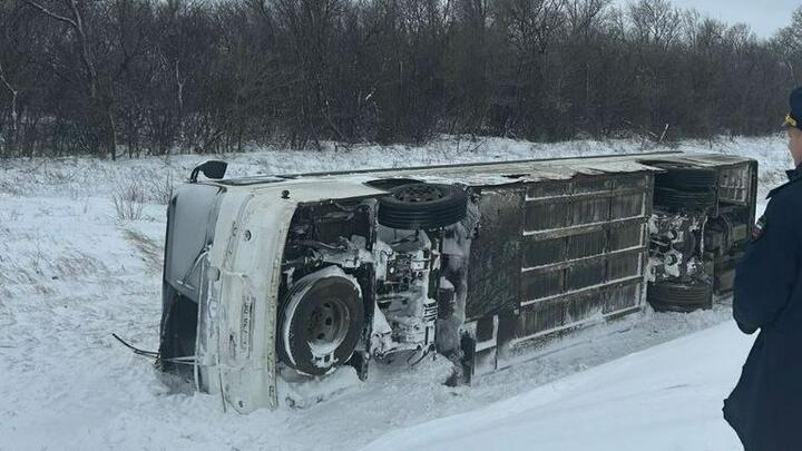 У поселка Пушкино водитель автомобиля Honda выехал на встречку, не справился с управлением и столкнулся с автобусом Daewoo, в котором находились пассажиры. После удара автобус съехал в кювет и опрокинулся, сообщили в областной прокуратуре.