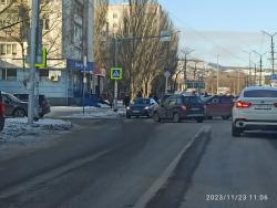 В результате движение транспорта на Большой Горной в сторону улицы Рахова затруднено. На месте происшествия работает сотрудник ГИБДД.