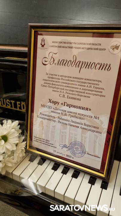 Все участники концерта были отмечены благодарственными письмами министерства культуры Саратовской области.