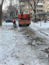 Всего было убрано 184 кубометра снега. Использовано 76 тонн песко-соляной смеси и 5 тонн реагента.