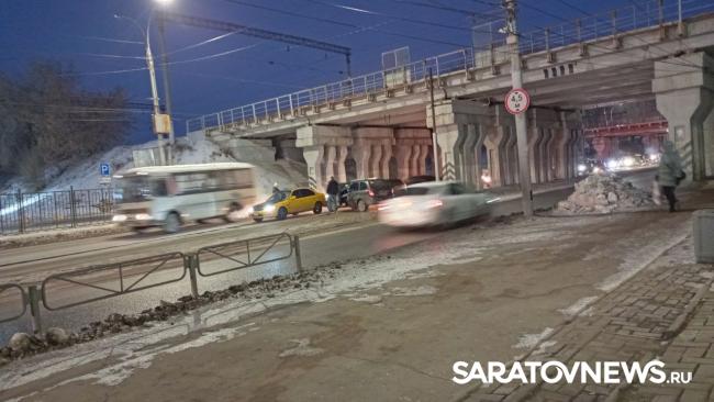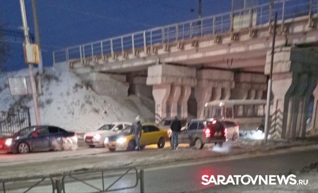Утром в Заводском районе Саратова произошло ДТП. У мостов на 7-й Нагорной улице столкнулись автомобили Hyundai и "Лада".
