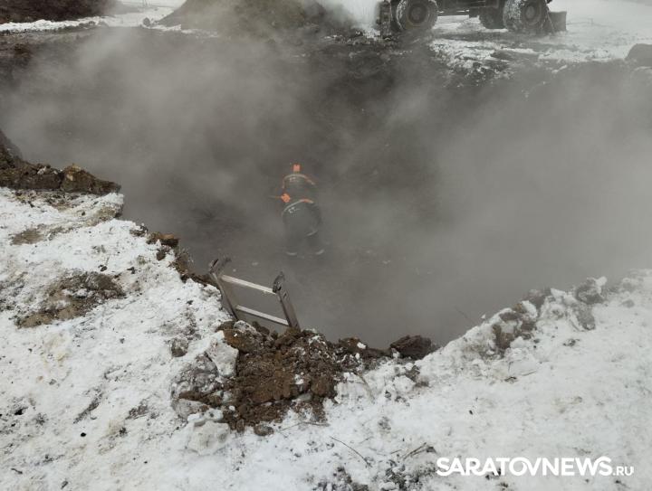 Ремонтные бригады Саратовского филиала «Т Плюс» устраняют повреждение трубопровода на улице Куприянова. Дефект был выявлен в ходе планового обхода.