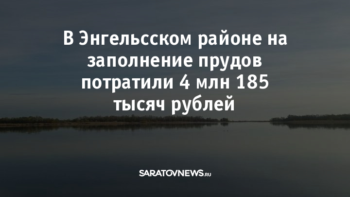 «За счёт средств областного бюджета в июне текущего года проведены мероприятия по заполнению водой прудов в поселках Лощинный, им. Карла Маркса и Коминтерн, всего подано 835 тысяч кубометров воды на сумму 4 млн 185 тысяч рублей», - сообщает сайт администрации Энгельсского района.