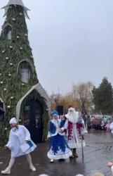 И даже в такую, совсем не зимнюю, погоду на праздник собралось много детей. Они вместе с Дедом Морозом и Снегурочкой помогли зажечь огоньки на зимней красавице.