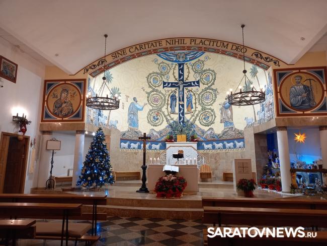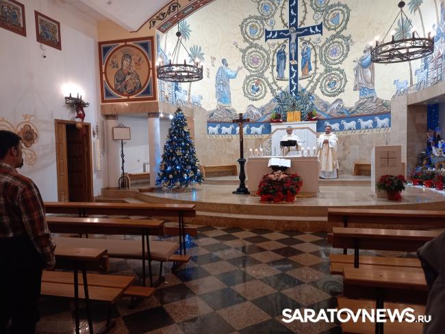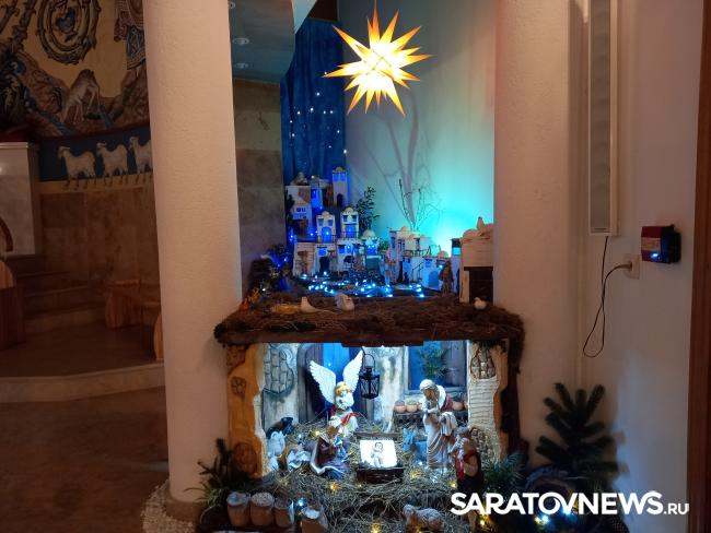 25 декабря в Римско-Католическом соборе святых апостолов Петра и Павла в Саратове состоялась торжественная месса, посвященная Рождеству Христову. На входе в церковь прихожан встречает Рождественский вертеп. Напомним, традиция устанавливать вертепы зародилась в XIII веке в Италии. Композиция изображает сцену Рождества Христова: Мария и Иосиф в пещере, а посредине в яслях – младенец Иисус. Еще один вертеп установлен в храме.