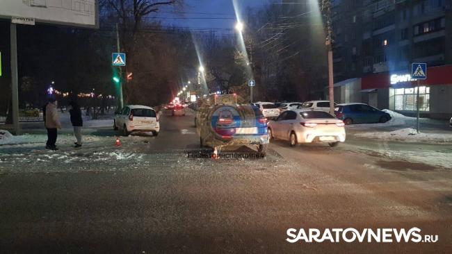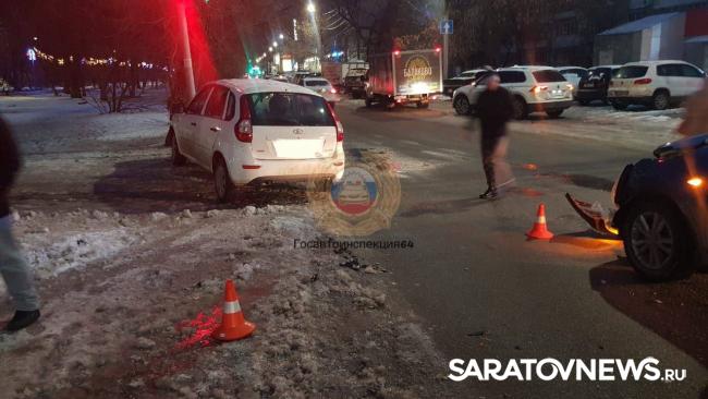 В результате удара автомобиль "Калину" отбросило в столб. Водителя "Лады" направили в больницу, сообщила Госавтоинспекция города Саратова.