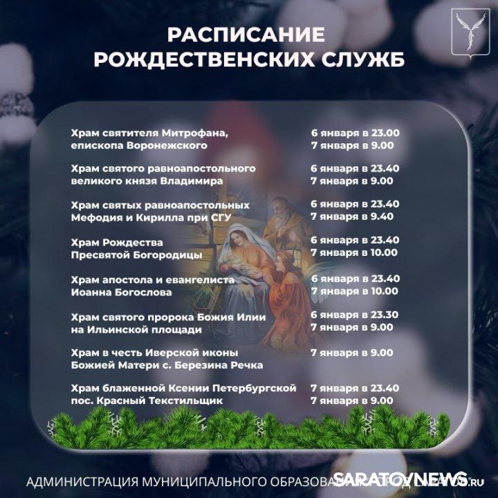 В храмах Саратова пройдут Рождественские богослужения