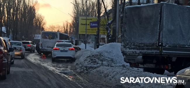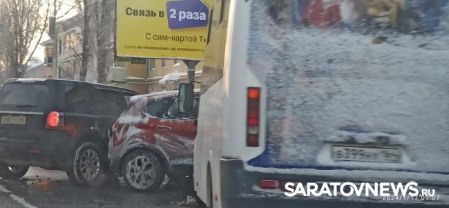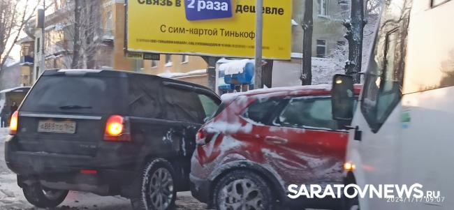 Примерно час назад в Кировском районе Саратова произошло тройное ДТП. В районе старого аэропорта столкнулись автомобили Land Rover, Renault и "ГАЗель", следовавшая по маршруту № 115.