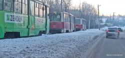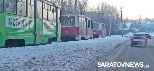 В Саратове остановилось движение трамваев № 11. Несколько стоящих вагонов саратовцы заметили на улице Плодородной.
