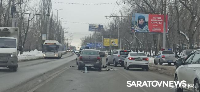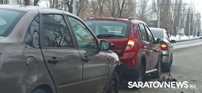 В Ленинском районе Саратова примерно час назад произошло тройное ДТП. На пересечении проспекта 50 лет Октября и Делового тупика столкнулись автомобили Ford, Renault и "Лада".