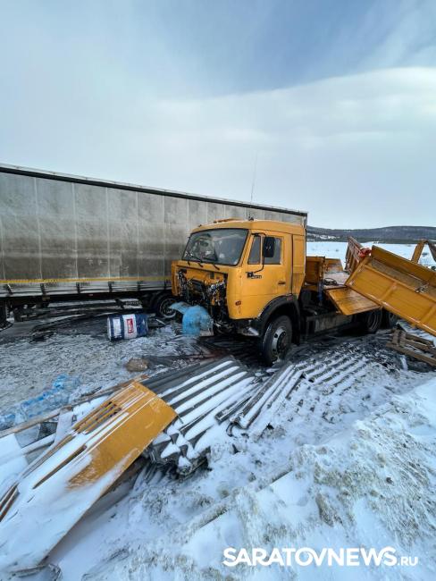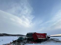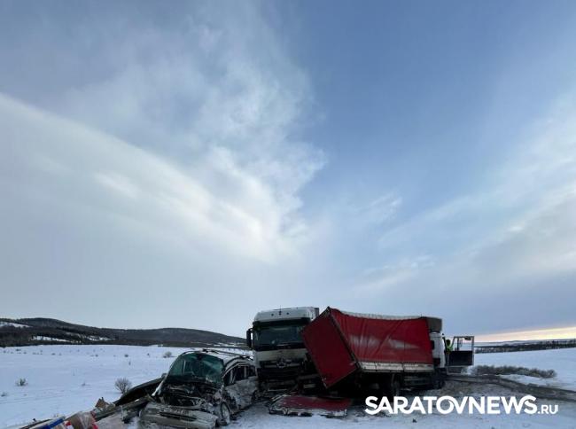 Около трех часов назад в Хвалынском районе Саратовской области произошло массовое ДТП. У поворота на село Алексеевка столкнулись шесть автомобилей: "МАЗ","КамАЗ", два большегруза Mercedes, автомобиль Renault, минивен Mercedes. Об этом сообщает областная ГИБДД.