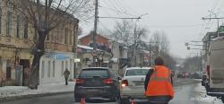 В результате аварии затруднено движение общественного транспорта на улице Московской. По сообщению очевидцев, дорога обледенелая, автобусы еще могут объехать место происшествия, троллейбусам это сделать сложнее.