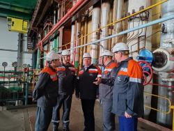 Михаил Торгашин осмотрел основные производственные помещения ТЭЦ-5, котлотурбинный цех, главный щит управления, систему водоочистки, ознакомился с работой генерирующего оборудования, а также заслушал рапорт дежурного начальника смены об электрической и тепловой нагрузке предприятия.