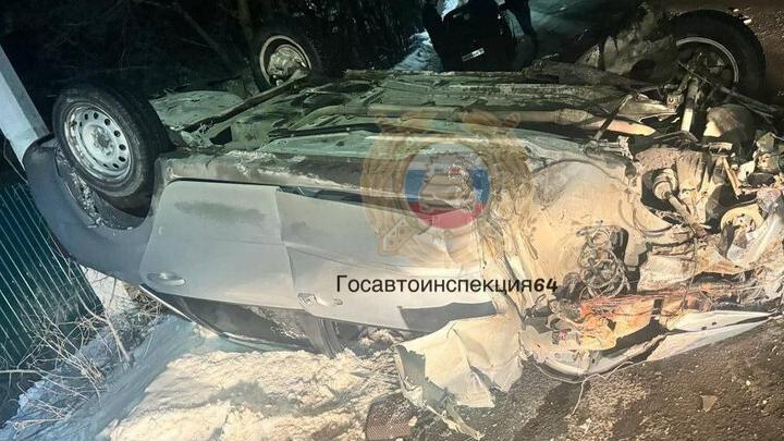 Вчера вечером в Саратове произошло ДТП. 30-летний водитель "Лада Приора", не справившись с управлением, столкнулся с "Лада Гранта". Затем "Приору" отбросило на забор и она перевернулась.