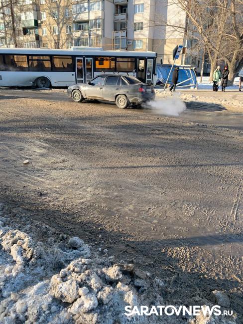 Вечером в Солнечном поселке Саратова произошло ДТП с общественным транспортом.
