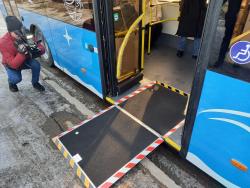 Электробус рассчитан на людей с ограниченными возможностями здоровья. Здесь имеется пандус, а сама машина низкопольная, что очень удобно для пожилых.