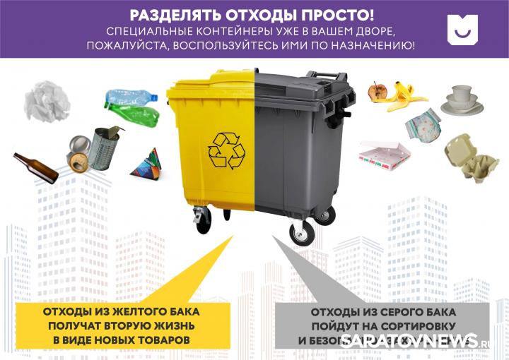 Напомним, что в рамках развития системы раздельного сбора отходов в Саратове и Энгельсе установлены два типа контейнеров. Серые предназначены для смешанных отходов, желтые –