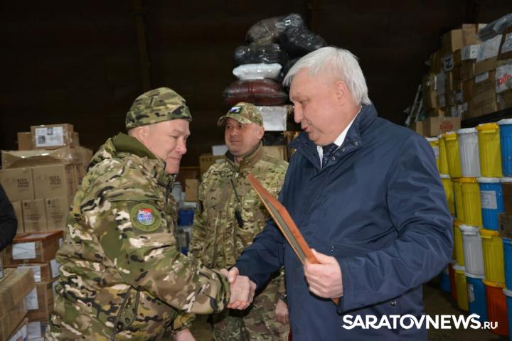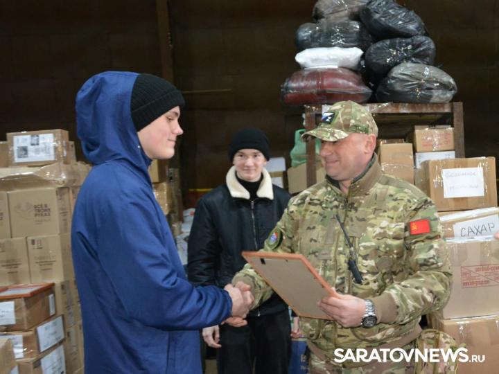 Перед очередной отправкой на пункт сбора приехал глава района Дмитрий Плеханов. Он отметил тех волонтеров, которые принимают самое деятельное участие в помощи фронту, вручил Благодарственные письма Губернатора Саратовской области, почетные грамоты Главы Энгельсского района.