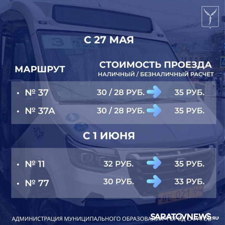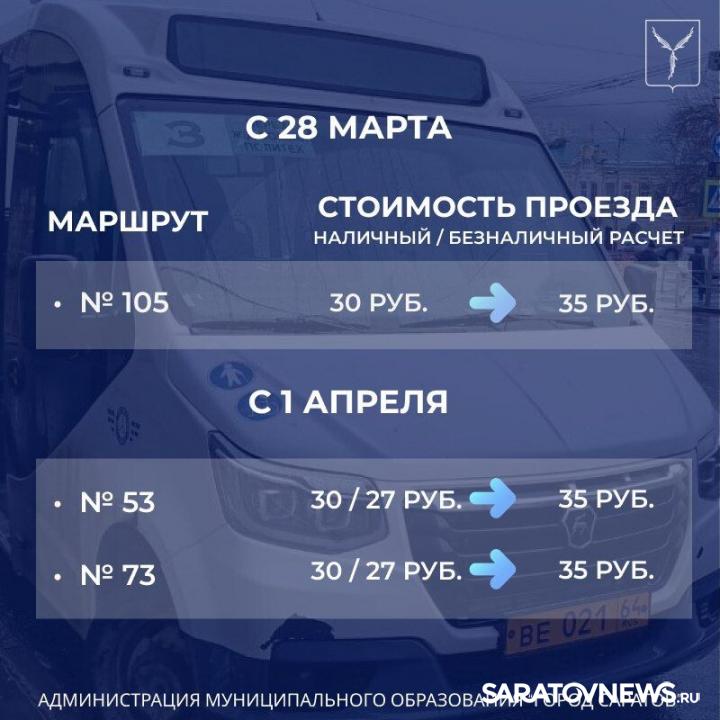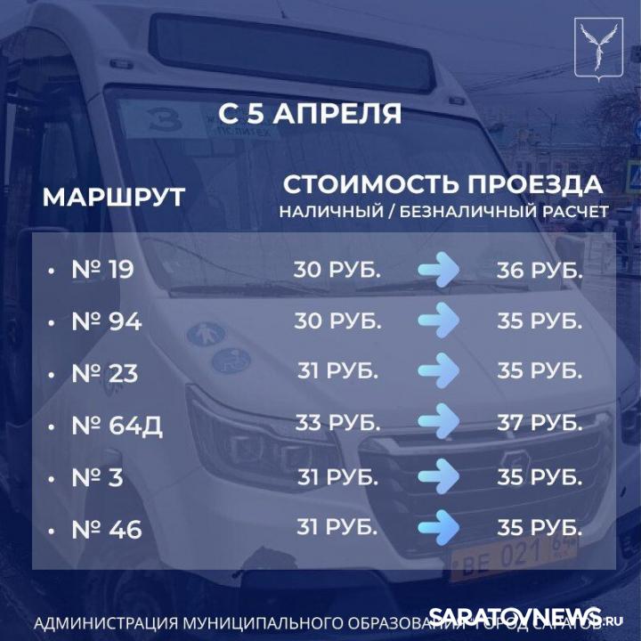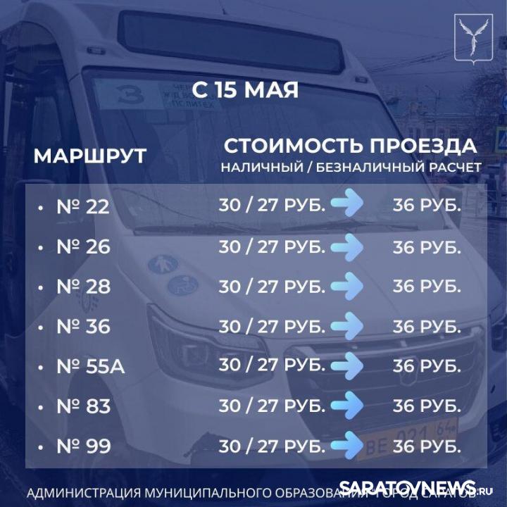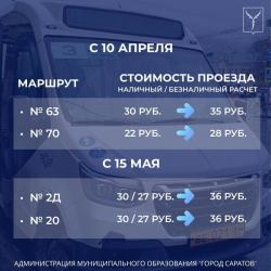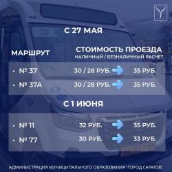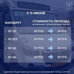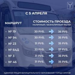 Сегодня, 28 марта, в администрации города Саратова сообщили о предстоящем повышении цен на проезд в общественном транспорте. Как заявили в мэрии, по закону перевозчики обязаны уведомлять заказчика перевозок о повышении цен за полгода. Перевозчики заранее уведомили администрацию о повышении цен, которое произойдёт с 28 марта по 11 июня. Они обосновали повышение стоимости закупкой новой техники, а также увеличением стоимости ГСМ. В среднем, стоимость проезда на автобусе, троллейбусе и маршрутных такси вырастет до 35-39 рублей.