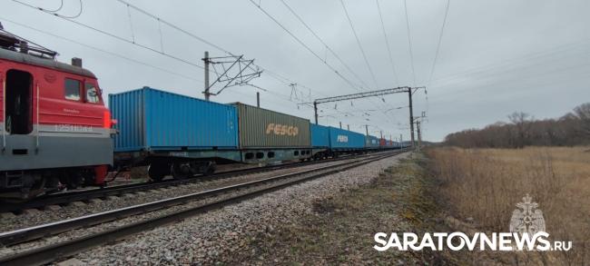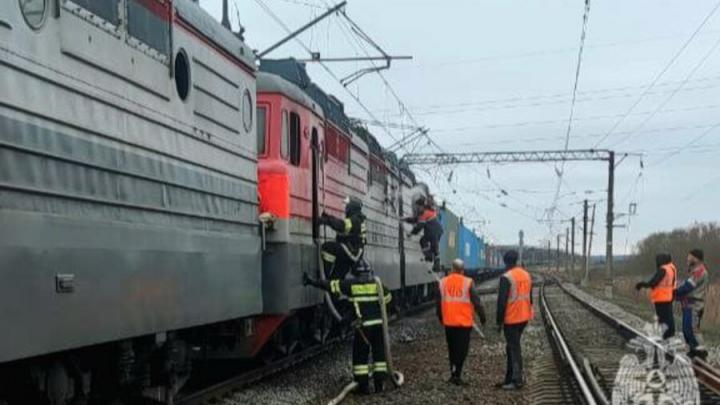 В Балашовском районе Саратовской области в субботу, 6 апреля, произошел пожар. На железнодорожном переезде Юго-Восточной железной дороги утром загорелся один из электровозов в грузовом составе. Всего в нем было три электровоза и 29 контейнеров. Об этом сообщили в областном ГУ МЧС.