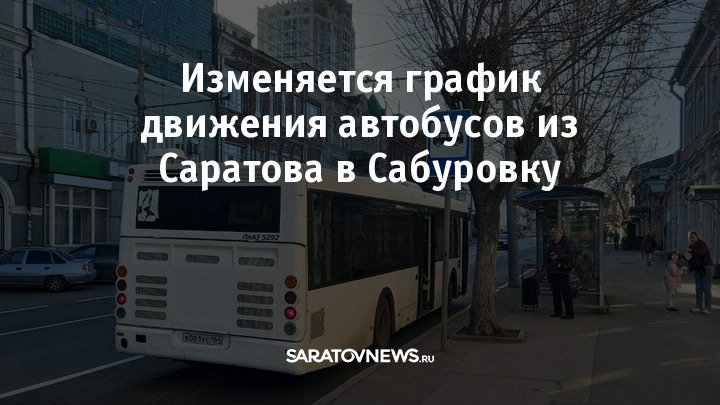 С 13 апреля в Саратове изменяется график движения автобусов в Сабуровку (маршрут №358). Как пояснили в региональном министерстве транспорта и дорожного хозяйства, корректировки внесены по многочисленным просьбам жителей.
