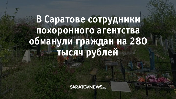 «С марта по сентябрь 2021 года, будучи сотрудниками МКУ «Администрация кладбищ» и МУСПП «Ритуал», находясь на территории Увекского и Нового кладбищ в городе Саратове, путем обмана под предлогом продажи бесплатных земельных участков под захоронения, похитили денежные средства у 12 жителей города Саратова на общую сумму 280 тысяч рублей», - сообщает региональный следственный комитет.