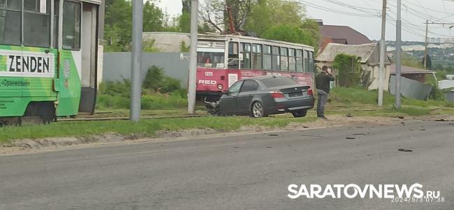 Утром 3 мая в Кировском районе Саратова произошло ДТП. В 1-м проезде Танкистов автомобиль BMW после удара вылетел на трамвайные пути.