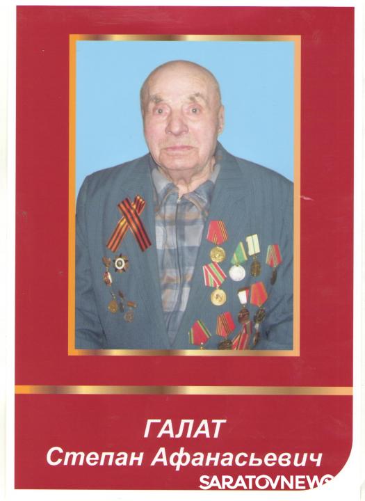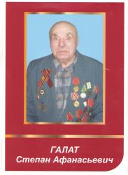Степан Афанасьевич Галат увидел свет в 1912 году в селе Солёное Ялшатинского района Калмыкии. Его боевой путь пролёг от степей родной Калмыкии до Польши. Участник боёв на реке Ладога во время блокады Ленинграда, он встретил окончание войны в Варшаве.