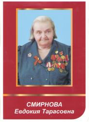 За умелые, инициативные и смелые действия в бою, способствовавшие успешному выполнению боевых задач, Евдокия Тарасовна награждена орденом Красной звезды, орденом «За взятие Берлина» и медалью «За боевые заслуги».