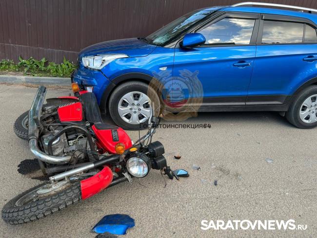 В четверг вечером, 9 мая, в Ленинском районе Саратова произошло ДТП. В 18:20 около дома № 22 по улице Молодежная мотоцикл "Иж Планета-5" столкнулся с припаркованным автомобилем Hyundai.
