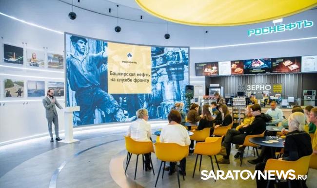 Героический подвиг нефтяников можно было также увидеть: в павильоне показывали фильмы о подвигах людей, приближающих в тылу Великую Победу. Сердце замирает от кадров бомбежек завода в Саратове. Но ничто не смогло сломить дух советских людей: мы выстояли. Отрадно, что в павильоне, наряду со взрослыми, было много детей. В Год семьи молодому поколению важно знать, помнить и чтить героический подвиг предков.
