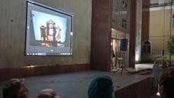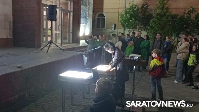 На территории музея Н.Г. Чернышевского каждый мог найти для себя занятие по душе. К примеру, можно было оценить «Песочную живопись» в исполнении Татьяны Матвеевой под аккомпанемент студентов Саратовской консерватории. Она рисовала, а на экране тут же проецировались завораживающие картины из песка, рассказывающие о жизни Николая Чернышевского. После показа детей пригласили порисовать песком.
