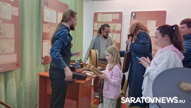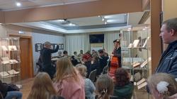 Также в музее состоялась интересная беседа о музыке с Никитой Кузькиным. Он рассказывал об этнических инструментах: бубне, волынке, калимбе, кахоне. А в завершении встречи на них можно было и поиграть.