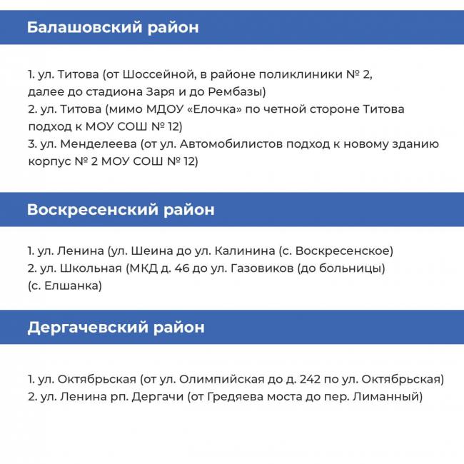 В Саратовской области продолжается ремонт тротуаров. Так, опубликованы списки для ремонта тротуаров в Аркадакском, Александрово-Гайском, Балашовском, Аткарском, Дергачевском и Воскресенском районах в рамках региональной программы.