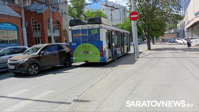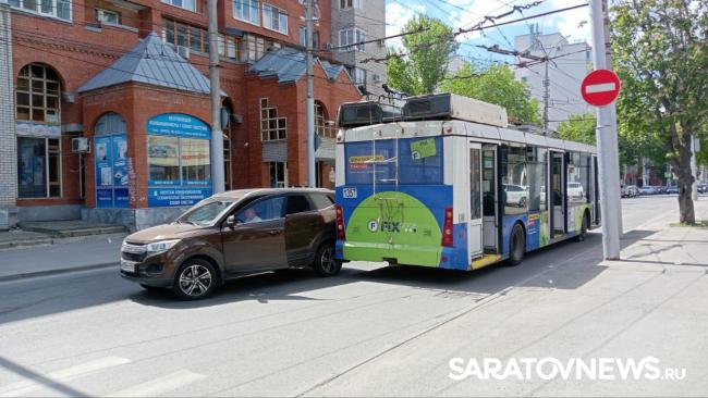 В Волжском районе Саратова примерно час назад произошло ДТП. У дома № 203 по улице Чернышевского столкнулись троллейбус и автомобиль Lifan Myway.