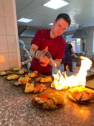 Прежде чем приступить к работе, шеф-повар разработал технико-технологические карты и летнее меню для подопечных, которое включает в себя такие интересные блюда, как говядина с морковью и черносливом, горбуша запечённая с розмарином, фрикасе из филе индейки, стракотто из говядины, перлотто с овощами.