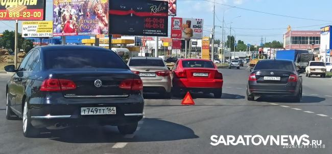 В результате аварии движение транспорта на указанном участке затруднено. Образовалась пробка в сторону и Вольского тракта, и проспекта Строителей.