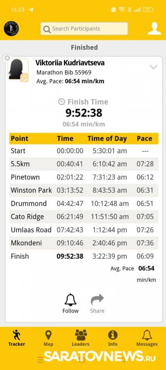 Для Виктории участие в Comrades уже не первое. В прошлом году она завоевала на просторах Африки бронзовую медаль, добавив славную страницу в саратовском любительском спорте. И вот вновь награда - медаль back-to-back (туда – обратно), которую участники получают, если финишируют на Comrades второй год подряд.
