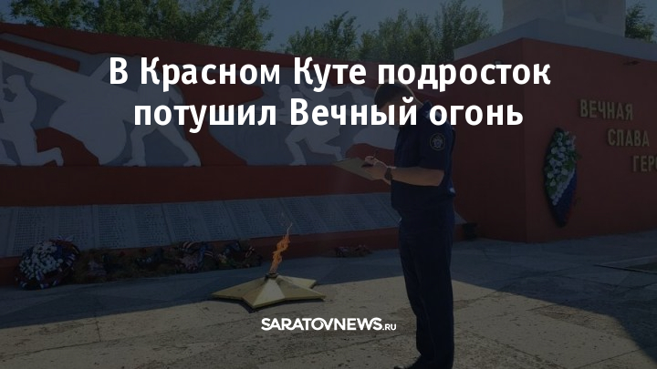В Красном Куте несовершеннолетний потушил Вечный огонь, расположенный на территории памятника-мемориала воинам-краснокутцам, погибшим в годы Великой Отечественной войны.