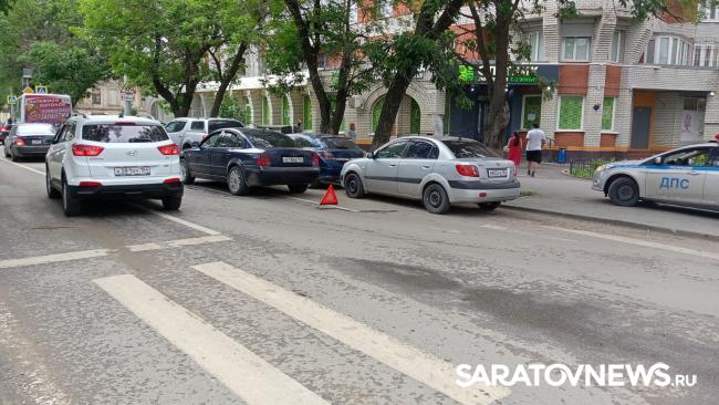 Несколько минут назад в Саратове на улице Чернышевского, в районе перекрестка с Обуховским переулком, столкнулись две легковушки. В районе ДТП образовалась пробка.