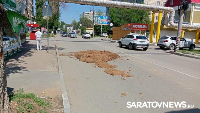 В Энгельсе на улице Волоха, напротив ларька с молочной продукцией, лежит непонятная куча коричневого цвета. Горожане старательно обходят ее стороной.