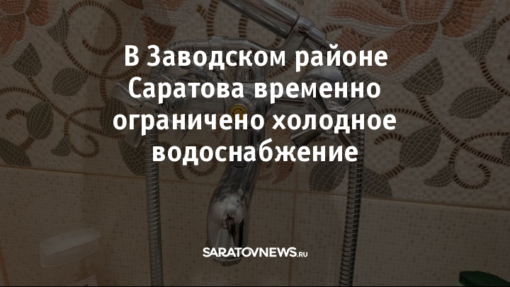 Сегодня, 18 июня, в Заводском районе города Саратова проводятся работы на коммуникациях ДК «Нефтяник». В связи с этим до полуночи будет ограничено холодное водоснабжение абонентов, проживающих в границах улиц Брянская, Ново-Крекингская, Азина и проспекта Энтузиастов, а также в посёлке Князевка.