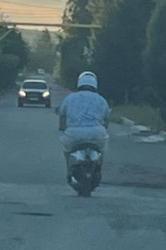 На следующем фото видно, как министр едет на этом мотороллере.