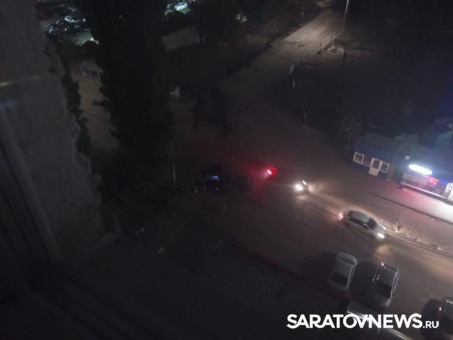 Сегодня ночью в Саратове на первой Дачной, на углу улицы Алексеевской в районе пиццерии, столкнулись два легковых автомобиля.
