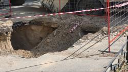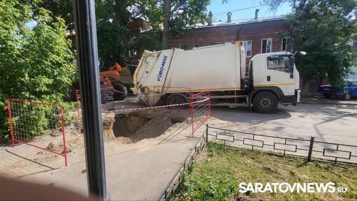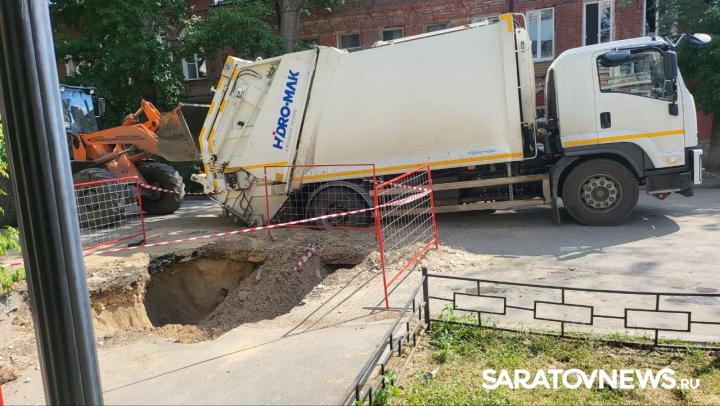 На улице Челюскинцев, в самом сердце Саратова, произошло необычное происшествие. Мусоровоз, который ехал по своим делам, внезапно провалился под асфальт. И всё это рядом с небольшим котлованом, который разрыли рабочие Саратовводоканала. Грузовик оказался в ловушке и теперь ждёт помощи.
