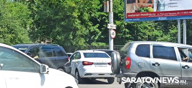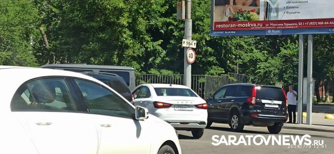 Сегодня, 9 июля, в Октябрьском районе Саратова произошло ДТП, усугубившее и без того ежедневно собирающуюся здесь пробку.